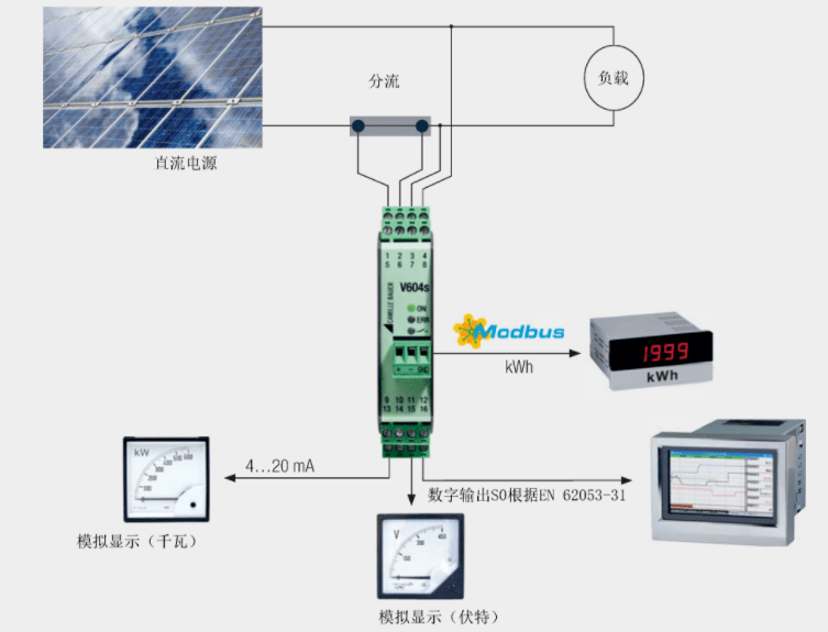 來(lái)自Camiller Bauer的直流電量變送器Sineax V604s,配套DC分流器,可用于監(jiān)測(cè)離網(wǎng)式光伏供電系統(tǒng)太陽(yáng)能電池板的實(shí)時(shí)功率。