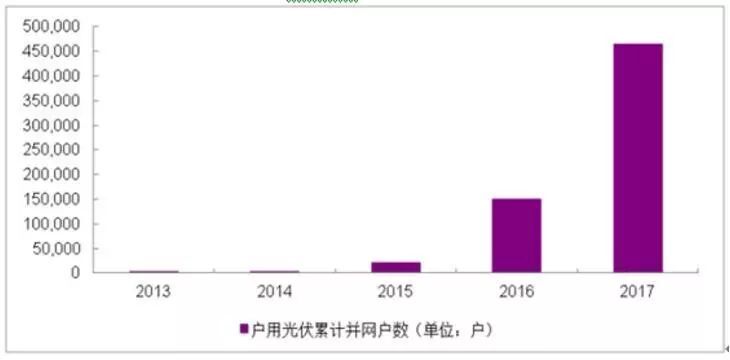 2013年底,國家層面的分布式光伏補貼政策正式發(fā)布,2014年-2015年相關(guān)政策逐漸滲透到基層,2016年前后,光伏行業(yè)巨頭開始布局戶用市場,進(jìn)入2017年,相關(guān)業(yè)務(wù)開始逐步落地。2017年全年全國戶用累計并網(wǎng)戶數(shù)達(dá)到46.5萬戶,同比增長超過200%。2018年上半年分布式光伏新增裝機1224萬千瓦,同比增長72%,新增規(guī)模首次超過集中式光伏,體現(xiàn)了光伏發(fā)電未來的發(fā)展方向。