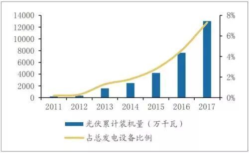 中國新增裝機容量連續(xù)五年全球D一,截至2018年4月,中國并網(wǎng)光伏裝機容量已經(jīng)超過1.4億千瓦。